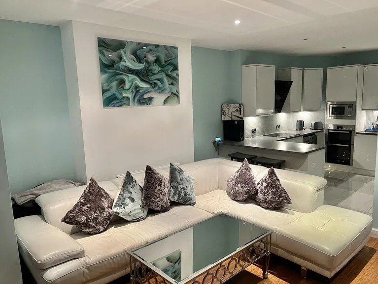 Sculptural luxury chaise lounge in premium upholstery. A sculptural chaise lounge upholstered in a premium linen blend, offering refined comfort and timeless British elegance.